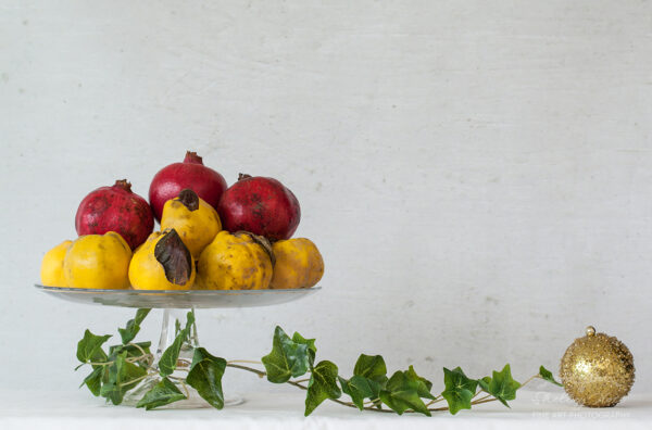 Christmas Still Life with Pomegranates and Quinces Card features the two fruits so long associated with love, fertility and fidelity. What better way to say to a loved one, “Merry Christmas”? This is a modern interpretation of the traditional still life and will bring a stylish addition to any mantlepiece.